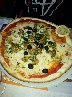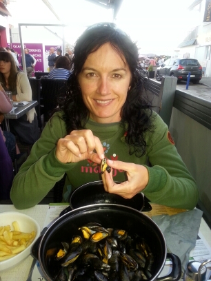 y al final nos quedaremos a cenar allí unos mejillones con patatas fritas (moules frites – muy típico), una pizza y un par de cervezas.