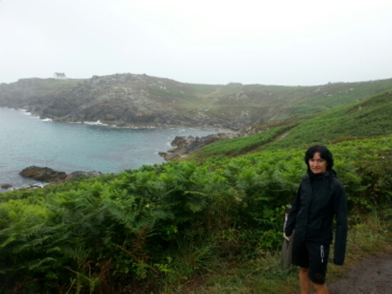 En una playita (Pors Peron) que paramos y damos una vuelta pequeña andando, vemos que el agua tiene una pinta estupenda y parece que nadar allí puede ser un acierto (hay como calitas a las que puedes pasar y el agua está cristalina).